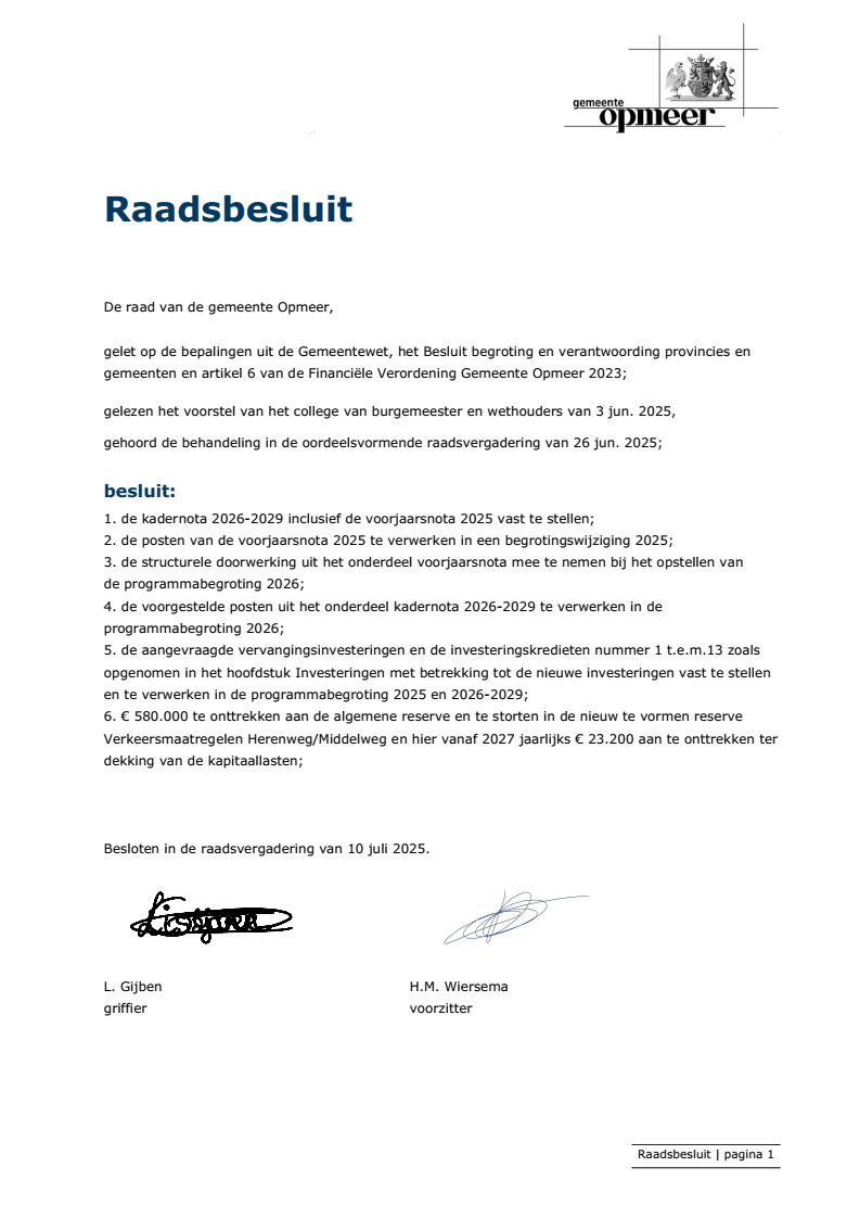 Raad 10 juli 2025